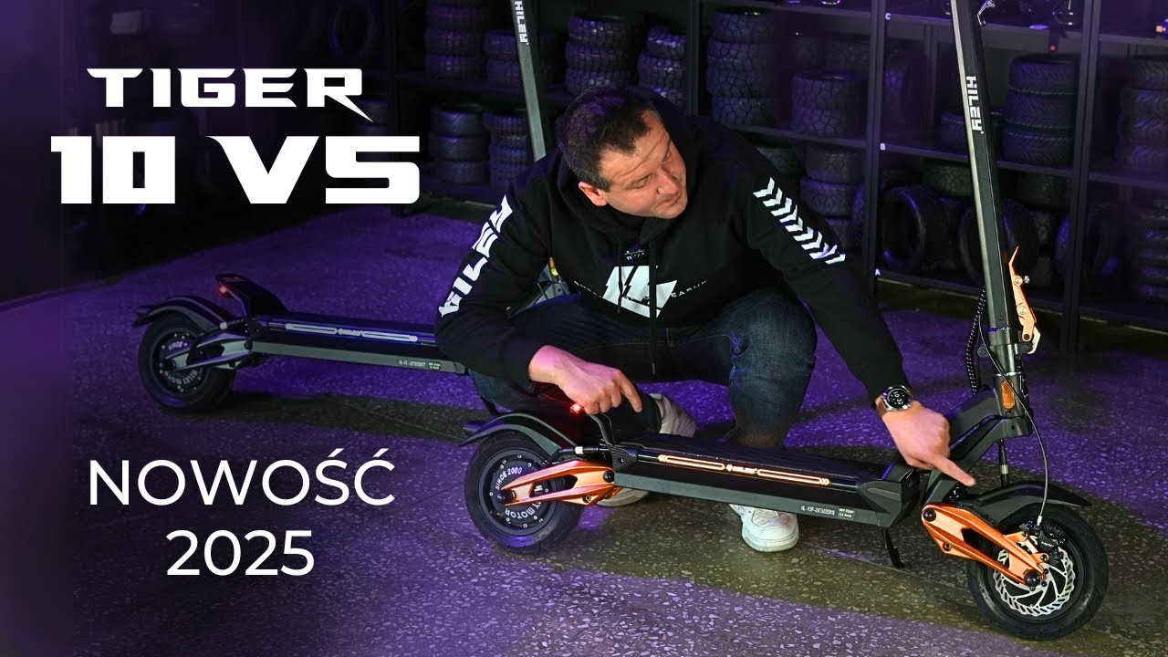 Tiger 10 V5 PERFORMANCE — це вдосконалена версія популярної V5 з акцентом на надійність та зручність обслуговування. Батарея на преміальних елементах Samsung 21700 забезпечує 95 км запасу ходу та тривалий термін служби. Головна особливість — система швидкознімних шин. Заміна колеса займає лише 5 хвилин без спеціальних інструментів. Двомоторна система 3400W та 10-дюймові безкамерні колеса гарантують динаміку та комфорт. Подвійна зарядка 2x3.5A скорочує час заряджання до 5 годин. Водозахист IPX7 — найвищий у класі. NFC-замок, мобільний додаток та RGB-підсвітка входять у стандартну комплектацію. Вага лише 29.9 кг.