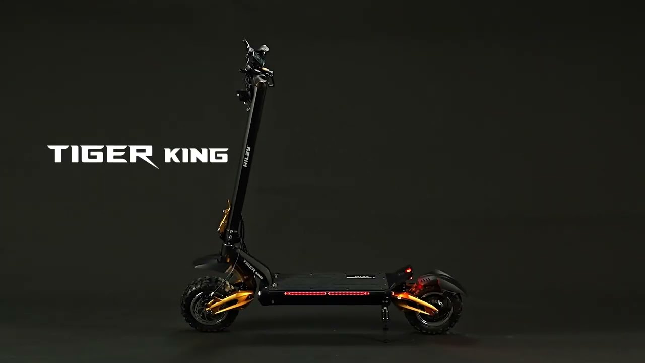 Tiger KING RS — це вершина інженерної думки Hiley, створений для тих, хто не йде на компроміси. Двомоторна система потужністю 4600W розганяє самокат до 90 км/год, а преміальна батарея Samsung 35Ah забезпечує неймовірні 135 км на одному заряді. Гідравлічна підвіска з регулюванням поглинає будь-які нерівності, перетворюючи кожну поїздку на задоволення. 11-дюймові безкамерні шини та 4-поршневі гальма NUTT гарантують впевненість на будь-якій швидкості. NFC-замок, RGB-підсвітка, мобільний додаток та поворотники — KING RS має все, що потрібно сучасному райдеру. Водозахист IPX6 дозволяє їздити в будь-яку погоду.